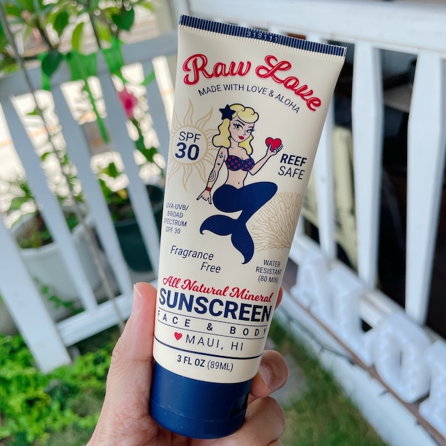 そこで現在ハワイでは、「オキシベンゾン」や「オクチノキサート」をはじめ、サンゴ礁や人体によくないとされる化学物質を使わない、コーラルセーフな日焼け止めだけが流通しています。数多くのブランドが独自の商品を作り出していますが、中でもとくに注目を集めているのが「Raw Love Sunscreen(ロウ・ラブ・サンスクリーン)」の日焼け止め。天然由来の成分を使用し、有害な化学物質を含んでいないのはもちろん、アメリカ食品医薬品局(FDA)による認可を受けていることが特徴です。