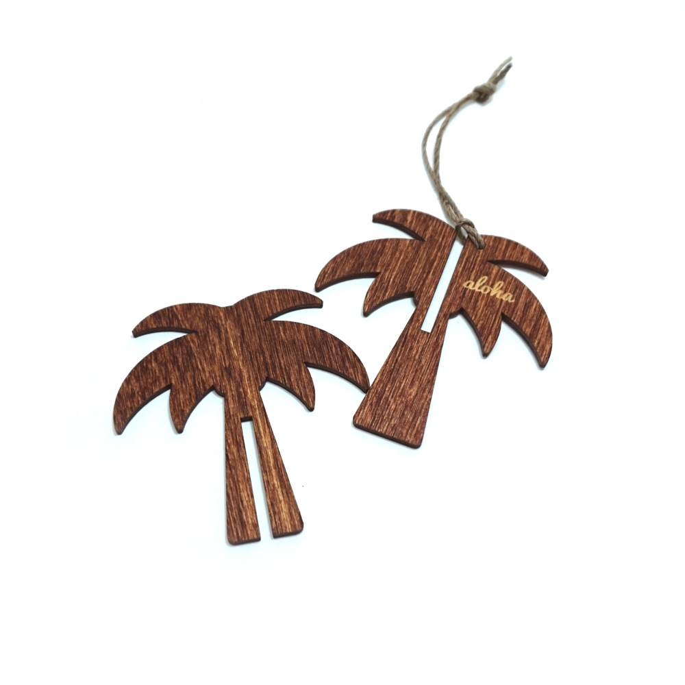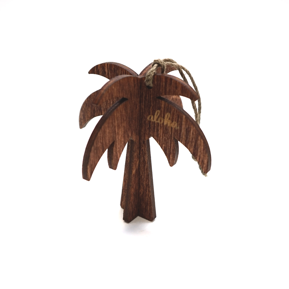 中でも「ウッド・オーナメント」は人気のアイテム。バーチ材を用いてヤシの木やパイナップル、ウクレレ、サーフガールなどのアロハなモチーフをキュートな飾りに仕上げたものです。紐でぶらさげられるようになっているので、デスク周りに飾ったり、玄関やリビングなどに置いても。もちろん、クリスマスツリーなどの飾りとして使っても素敵です!