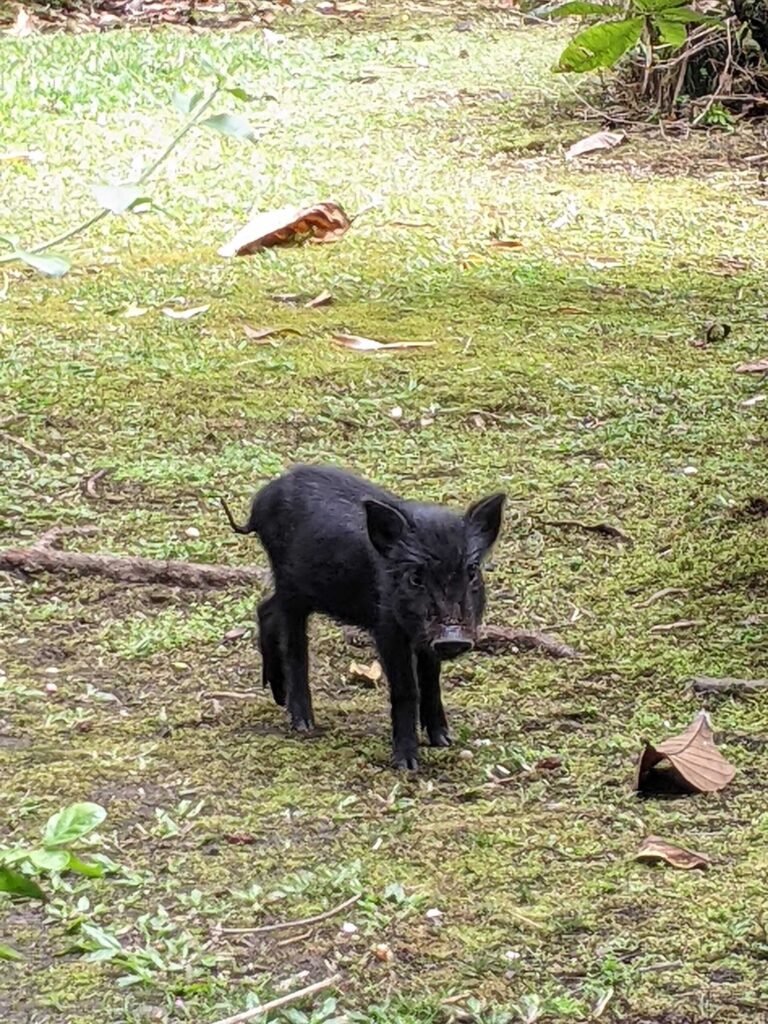野生のイノシシは、800年以上前に最初のポリネシア人たちが新しい土地で生きるために家畜として、様々な植物と共にハワイに持ち込んだ歴史があり、ケリーたちが購入したプナの農園に出没する馴染みの存在でした。ハワイの物語では、火山地帯の過酷な環境の中で生き抜く強靭さや適応力のシンボルとしても位置付けられるイノシシ。