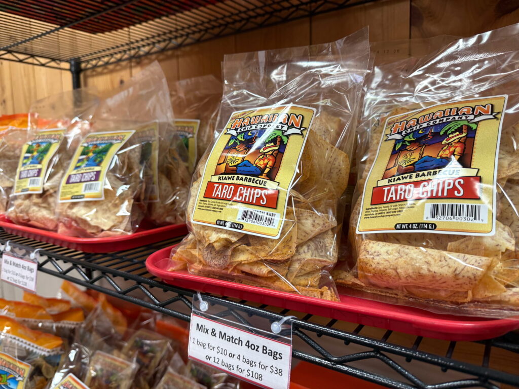 ハワイでは古来より大切に育てられてきた特別な作物、タロ。「でもね。正直なところ、僕たちはスイートポテトに集中したかったから、タロイモを扱うことは考えていなかったんです。ところが、一旦タロチップスの生産をスタートすると、予想以上の売上になって。ちょうど、それまでハワイ内でタロチップスを製造していた大手企業が生産中止したタイミングとも重なって、ハワイの様々な店舗がうちのタロチップスを採用してくれたんです。僕らにとって幸運な状況でしたね」とジミーさん。